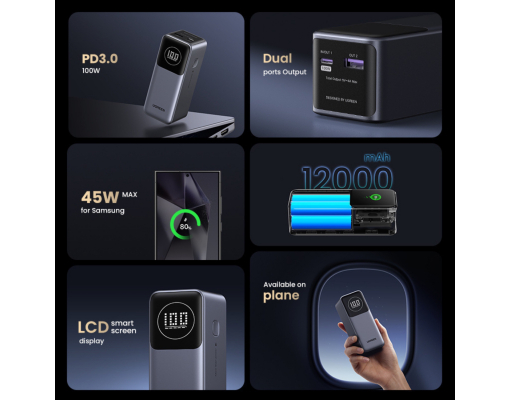 Baterie externa UGREEN PB724 12.000 mAh 100W Digital Display Gri
