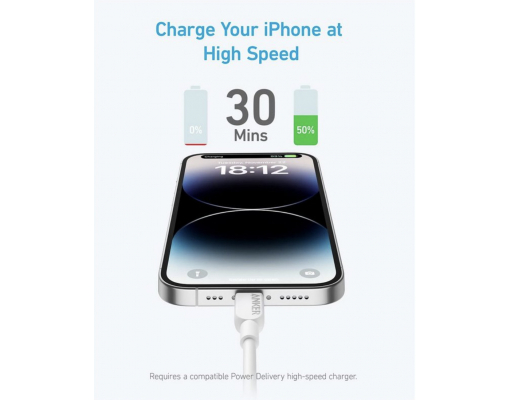 Cablu Anker USB-C USB-C 240W cu de 5x mai multa durata de folosire datorita materialelor speciale utilizate in procesul de productie si a nenumaratelor teste pentru rezistenta la indoire. Suporta pana la 240 W Power Delivery pentru a incarca rapid diverse dispozitive, inclusiv telefoane, tablete si laptopuri.