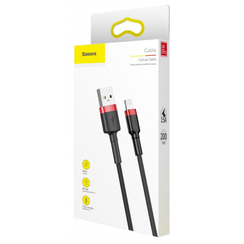Cablul Lightning - USB Baseus Cafule ofera incarcare mai rapida si mai sigura. Este compatibil 100% cu toate produsele Apple prevazute cu port Lightning. Durata de viata in utilizare este lunga datorita materialelor de calitate folosite in procesul de productie si a nenumaratelor teste pentru rezistenta la indoire.