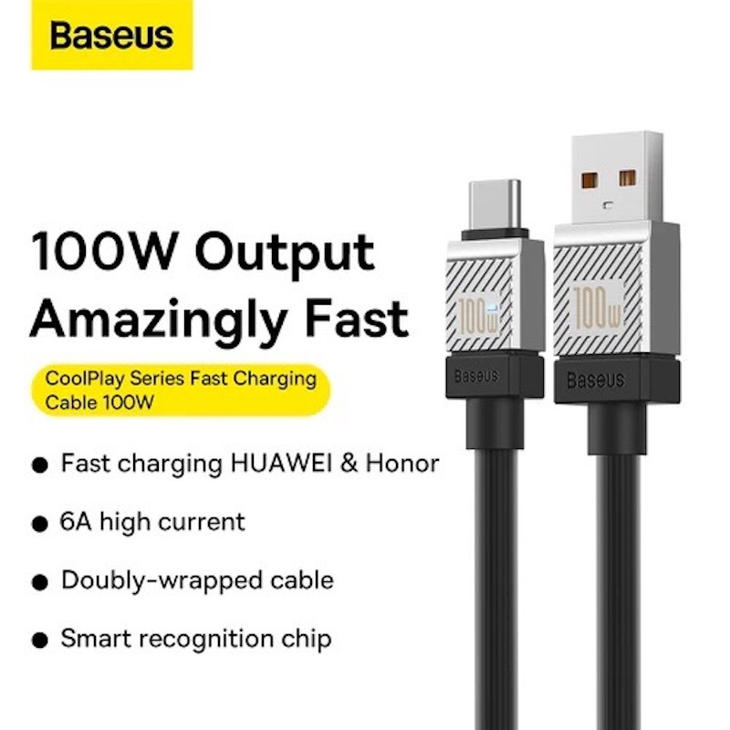 Cablu Baseus Coolplay, USB-A la USB-C, 100W, 1m, Negru
