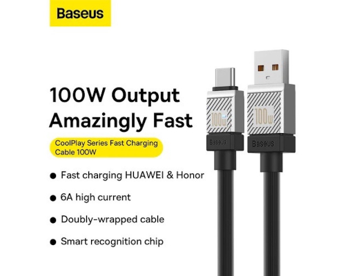 Cablu Baseus Coolplay, USB-A la USB-C, 100W, 2m, Negru