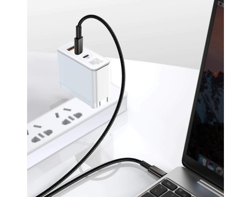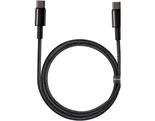 Cablu Baseus Tungsten Gold USB-C la USB-C, 100W Fast Charging, 1m, Negru