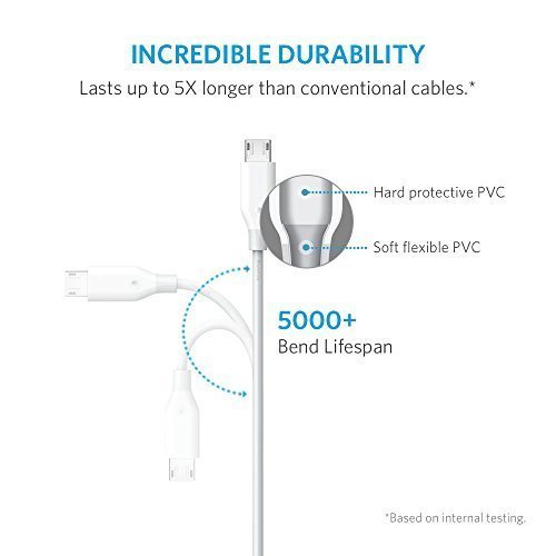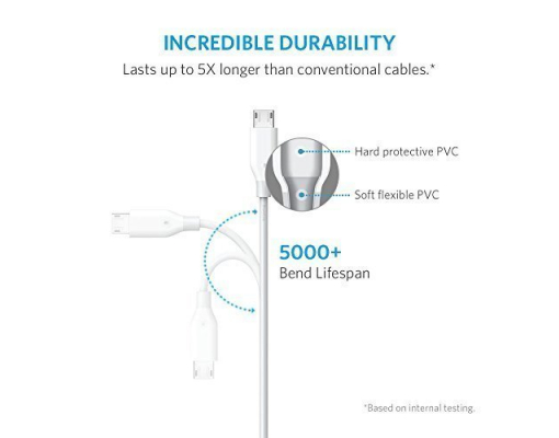 Cablul Micro USB Anker PowerLine se numara printre primele cabluri de incarcare fabricate cu fibra Kevlar. Cablul PowerLine este mult mai puternic decat cablurile obisnuite.