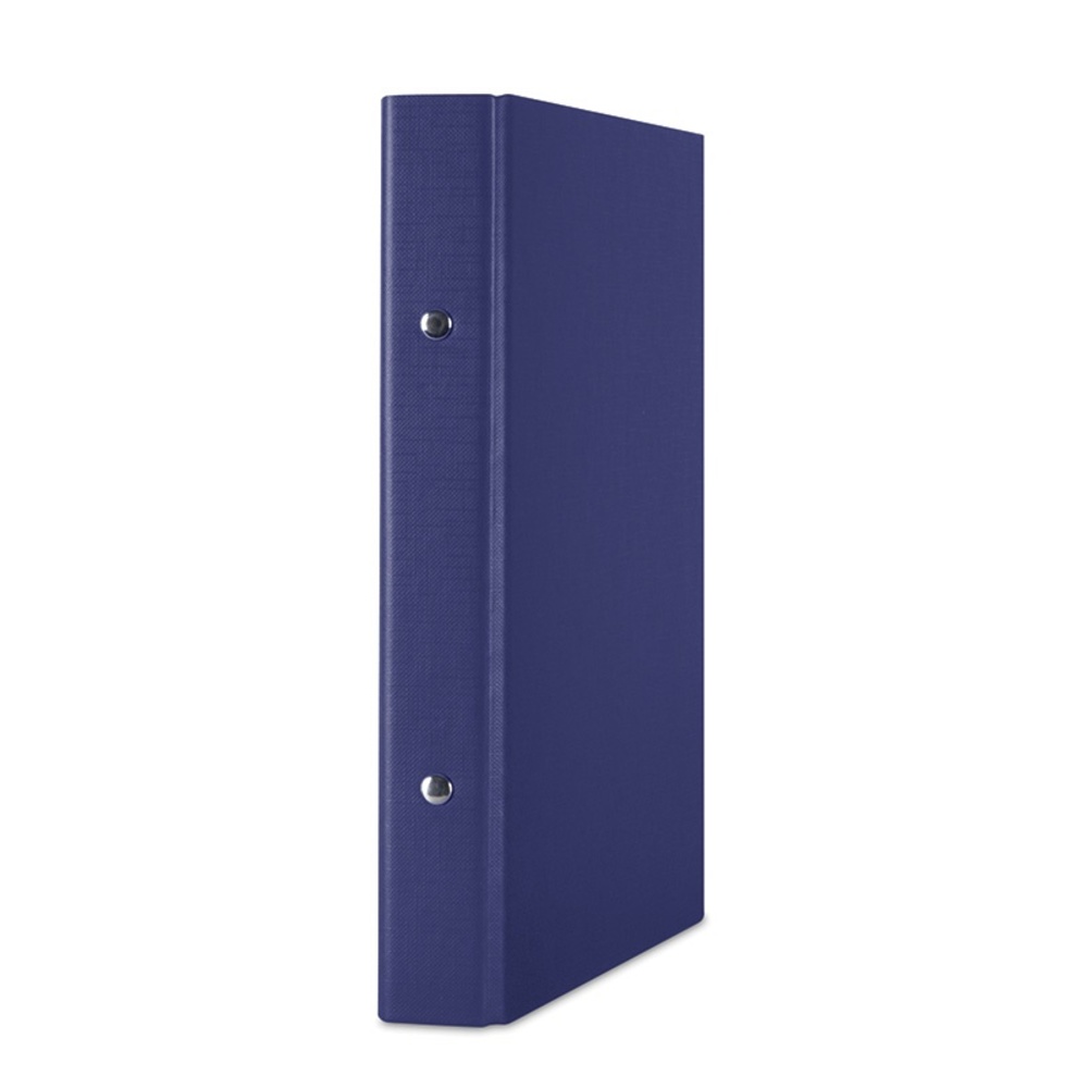 Fabricat din carton de 1.9 mm, plastifiat, 1170 gr/mp. Acoperit cu folie eco-friendly, din polipropilena (100 microni), cu textura canvas. Invelisul interior este din hartie alba. Format: A5. Latime cotor: 30 mm Numar inele: 2. Diametru inele: 20 mm Dimensiuni: 30 x 230 x 190 mm Culoare: bleumarin.