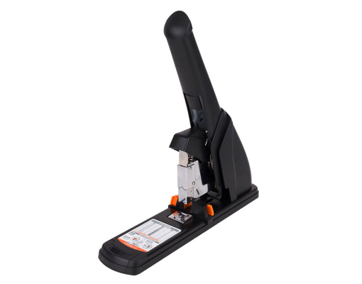 Reducerea cu 65% a efortului in timpul utilizarii. Capse utilizate in functie de numarul de coli: 23/6 pentru 15 de coli, 23/8 pentru 30 de coli, 23/10 pentru de 50 coli, 23/13 pentru 80 de coli, 23/15 pentru 100 de coli, 23/17 pentru 120 de coli, 23/20 pentru 150 coli, 23/23 pentru 210 coli. Structura solida. Baza metalica acoperita cu material cauciucat. Mecanism puternic din metal.