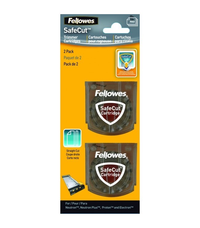 Ideal pentru utilizatorii cu nevoi de taiere frecvente. Lama retractabila se cupleaza numai in timpul taierii pentru a preveni contactul cu suprafata lamei. Se pot schimba cu usurinta si pot fi depozitate integral pentru a putea fi pastrate impreuna cu trimmerul in orice moment. Fiecare lama este inclusa in propriul sau cartus SafeCut, ceea ce inseamna ca lama este expusa numai atunci cand in uz. Include doua lame rotative din otel inoxidabil SafeCut™. Pentru utilizarea cu Fellowes® Neutron/ Neutron Plus, Proton si Trimerele Electron. Pentru siguranta, SafeCut Guard asigura faptul ca aparatul poate fi folosit doar in situatia in care garda se afla in pozitie.
