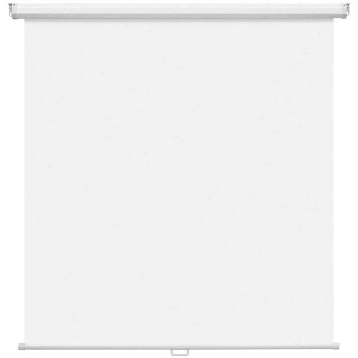 Ecran de proiectie pentru perete sau tavan cu banda alba. Se fixeaza printr-un sistem de cleme si conectoi, ideal pentru sali de conferinta. Tesatura realizata din sticla alba mata pe o parte permite utilizarea ecranului in diferite conditii de luminozitate. Tesatura din sticla face parte din categoria de materiale de izolare termica si izolare electrica cu o rezistenta ridicata inclusiv la intepaturi. Scara de luminozitate in conformitate cu DIN19045 tip D (uniform in toate directiile). Carcasa metalica prevazuta cu un mecanism cu arc ce blocheaza tesatura la fiecare13 cm.