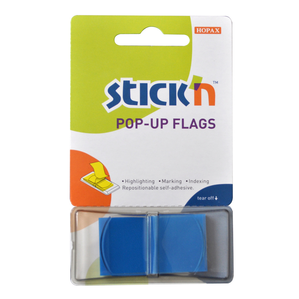Film index autoadeziv 45 x 25mm, 50 file/set, cu dispenser, Stick"n Pop-up - Albastru metalizat