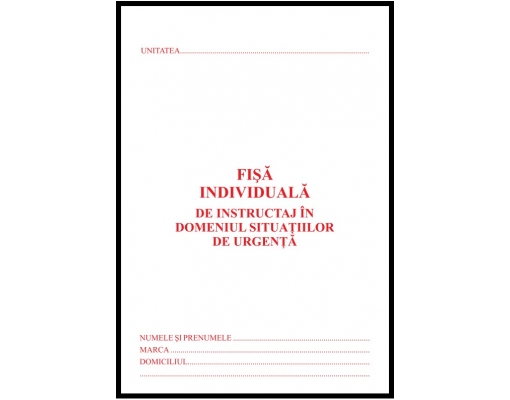 Marketing Concept va pune la dispozitie fisa individuala de instructaj in domeniul situatiilor de Urgenta ( denumire prescuratata Fisa PSI) A5, carnet 16 pagini, tipar rosu Carnetele sunt capsate pentru o siguranta sporita,acestea fiind prevazute cu perfor la cotor pentru o rupere mai usoara. Hartia este de o calitate superioara. Tabelurile sunt construite pe baza legislatiei conform cerintelor