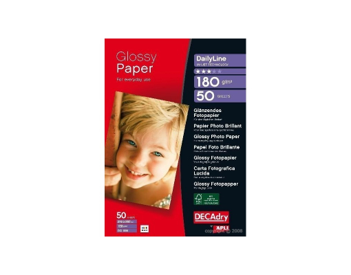 Hartie foto A4 lucioasa pentru inkjet DECAdry DCI1948, 180 g/mp, 50 coli/set