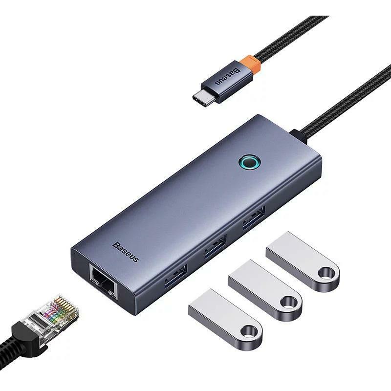 Hub Baseus UltraJoy 4-in-1 USB-C la 3xUSB 3.0, 1xRJ45, Gri
