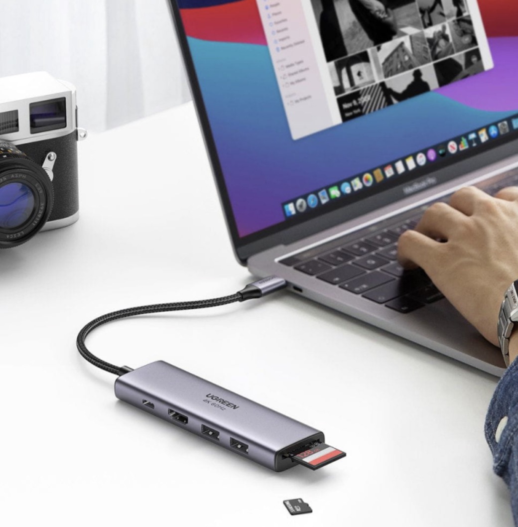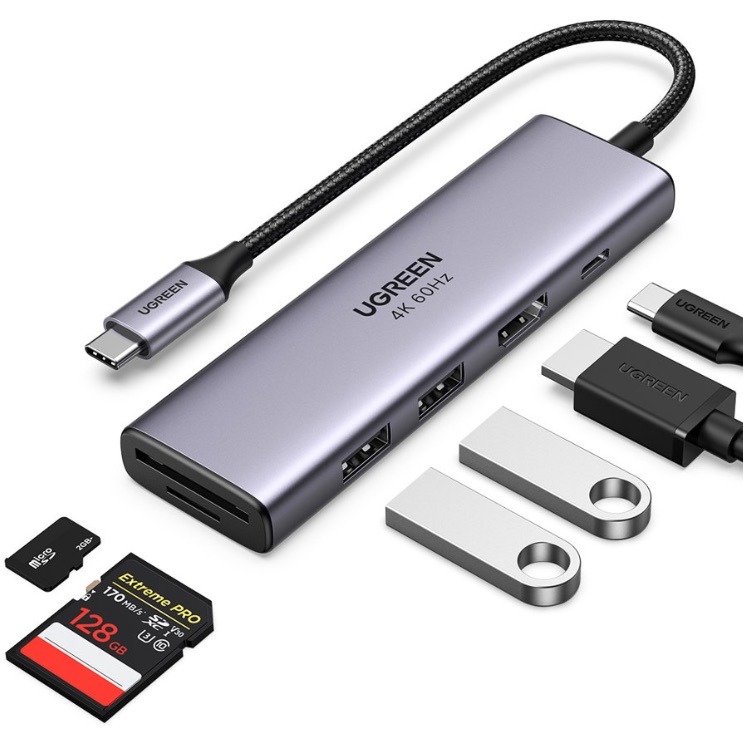 Hub Ugreen 6 in 1 USB-C la 2x USB-A, HDMI, SD/TF, 4K 60Hz, 100W PD, Gri