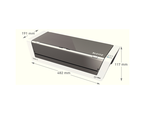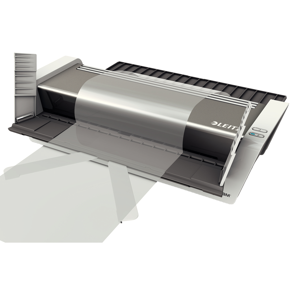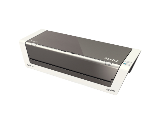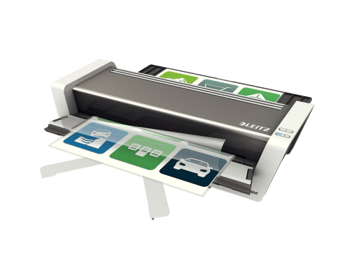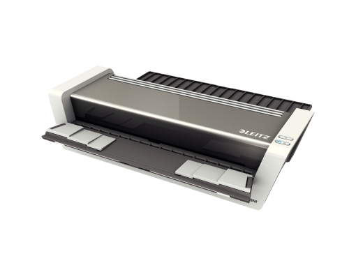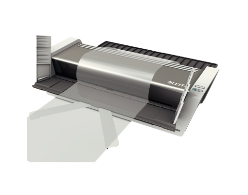 Laminator premium de mare viteza, format A3, complet automat cu tehnologie inteligenta pe baza de senzori. Recunoaste grosimea documentului si selecteaza automat viteza optima. Viteza de laminare 1500 mm/min- ideal pentru birourile aglomerate. 1 minut timp de incalzire. Nu este nevoie de timp de asteptare pentru schimbarea foliilor de diferite grosimi. Inserarea facila a foliei de laminare datorita sistemului unic patentat de clape rabatabile pentru o laminare constanta, de calitate. Consum de energie scazut datorita sistemului automat de stingere dupa 30 minute fara utilizare. Functie de revers automat- previne blocarea atunci cand folia nu este introdusa corect in laminator. Pentru folii de 80 pana la 250 microni. Laminarea unei folii A4 de 80 microni dureaza aproximativ 20 secunde. LED on/off si indicator de revers automat. Include kit de star cu folii de laminare. 3 ani garantie, certificat CE. Recomandat a fi folosit cu foliile de laminare Leitz UDT. Material: plastic ABS. Mod de functionare: 6 role, viteza controlata. Sistem de incalzire: 4 role incalzite din afara. Laminare fotografii: da. Timp de incalzire: 1 minut. Temperatura: max. 135° fixa. Grosimea maxima pentru laminare: 0.6 mm. Latimea maxima pentru laminare: 320 mm. Durata laminarii aprox. (A4): 20 secunde. Dimensiuni: 482 x 125 x 400 mm. Greutate: 8.2 kg. Culoare: alb/antracit.