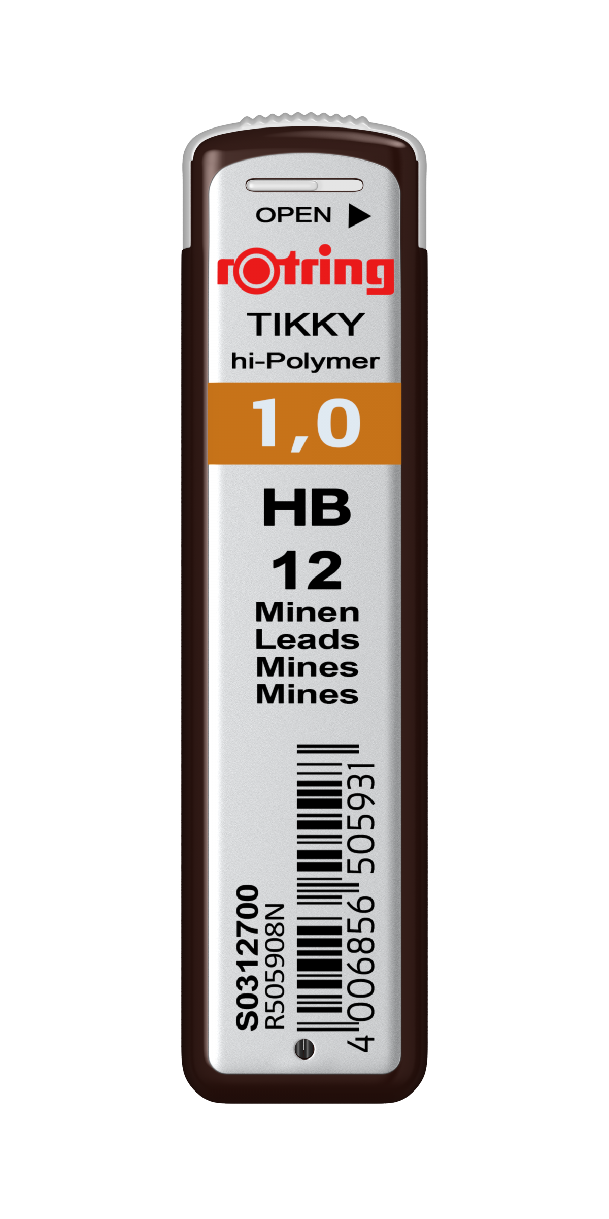 Mina din grafit de inalta calitate, rezistenta la rupere. Densitatea sporita rezultata din aglomerarea grafitului faciliteaza scrierea inclusiv in apropierea capatului terminal. Corpul etuiului este din material plastic. Mina din grafit aglomerat si dublu-polimerizat, trefilat si calibrat ultra-precis. Flexibilitatea sporita rezultata din dubla polimerizare confera elasticitate minei si impiedica ruperea in timpul scrierii. Etuiul contine 12 mine de 1.00 mm - tarie HB.