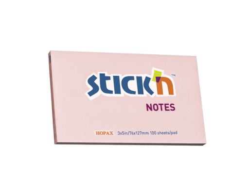 Notes autoadeziv 76 x 127 mm, 100 file, Stick"n - Roz pastel