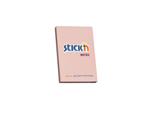 Notes autoadeziv 76 x 51 mm, 100 file, Stick"n - Roz pastel