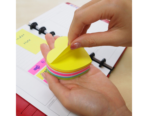 Notes autoadeziv Die-Cut - inima, 64 x 67 mm, 250 file/set, Stick"n - 5 culori fluorescente