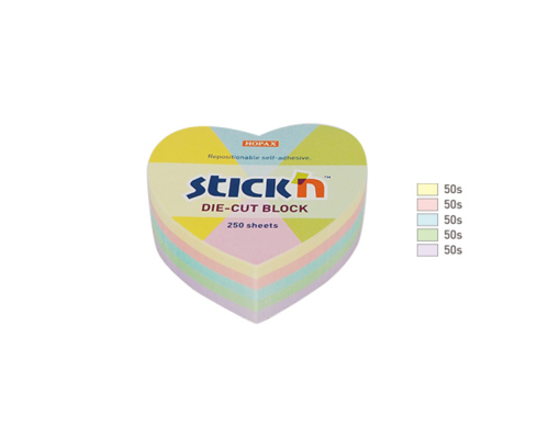 Notes autoadeziv Die-Cut - inima, 64 x 67 mm, 250 file/set, Stick"n - 5 culori pastel
