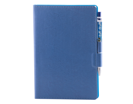 Coperta flexibila, din material piele ecologica dubla fata, termosensibil, colt rotund coperta si bloc, cusatura perimetrala, 2 clape de pix care blocheza coperta. Format A5, 192 pagini tiparite la 1+1 culori, pe hartie offset alb liniat de 70 gr/mp, bloc cusut, semn de carte.
