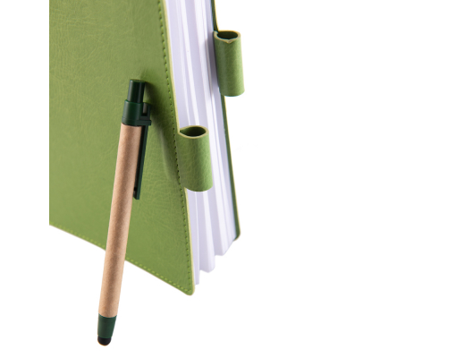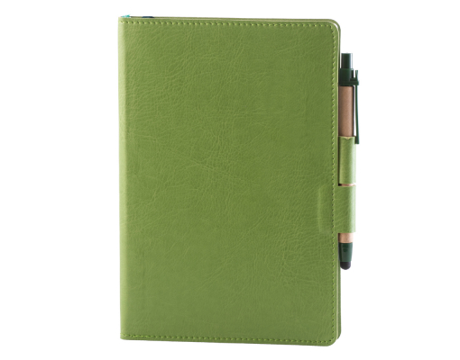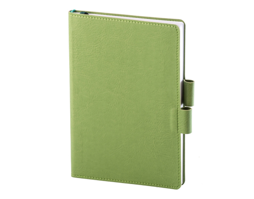 Coperta flexibila, din material piele ecologica dubla fata, termosensibil, colt rotund coperta si bloc, cusatura perimetrala, 2 clape de pix care blocheza coperta. Format A5, 192 pagini tiparite la 1+1 culori, pe hartie offset alb liniat de 70 gr/mp, bloc cusut, semn de carte.