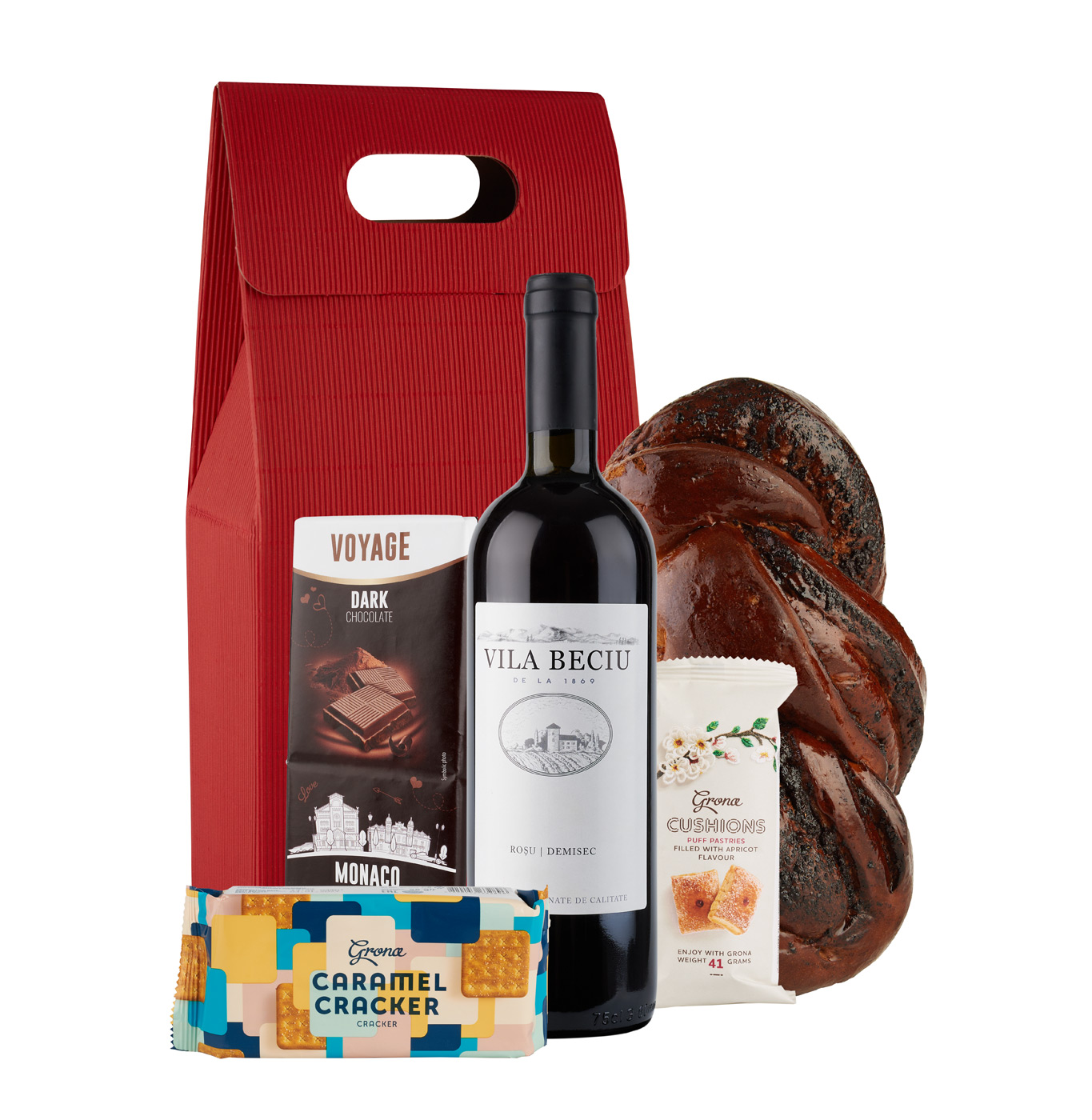 Te-ai obişnuit să aştepţi sărbătorile pentru a dărui un cadou, să fie o aniversare pentru a pune la cale o surpriză dulce.Noi credem că orice zi trebuie sărbătorită şi fiecare om drag care-ţi vine în minte merită să fie răsfăţat cu atenţia ta. 1. Vin rosu de masa Vila Beciu 75cl