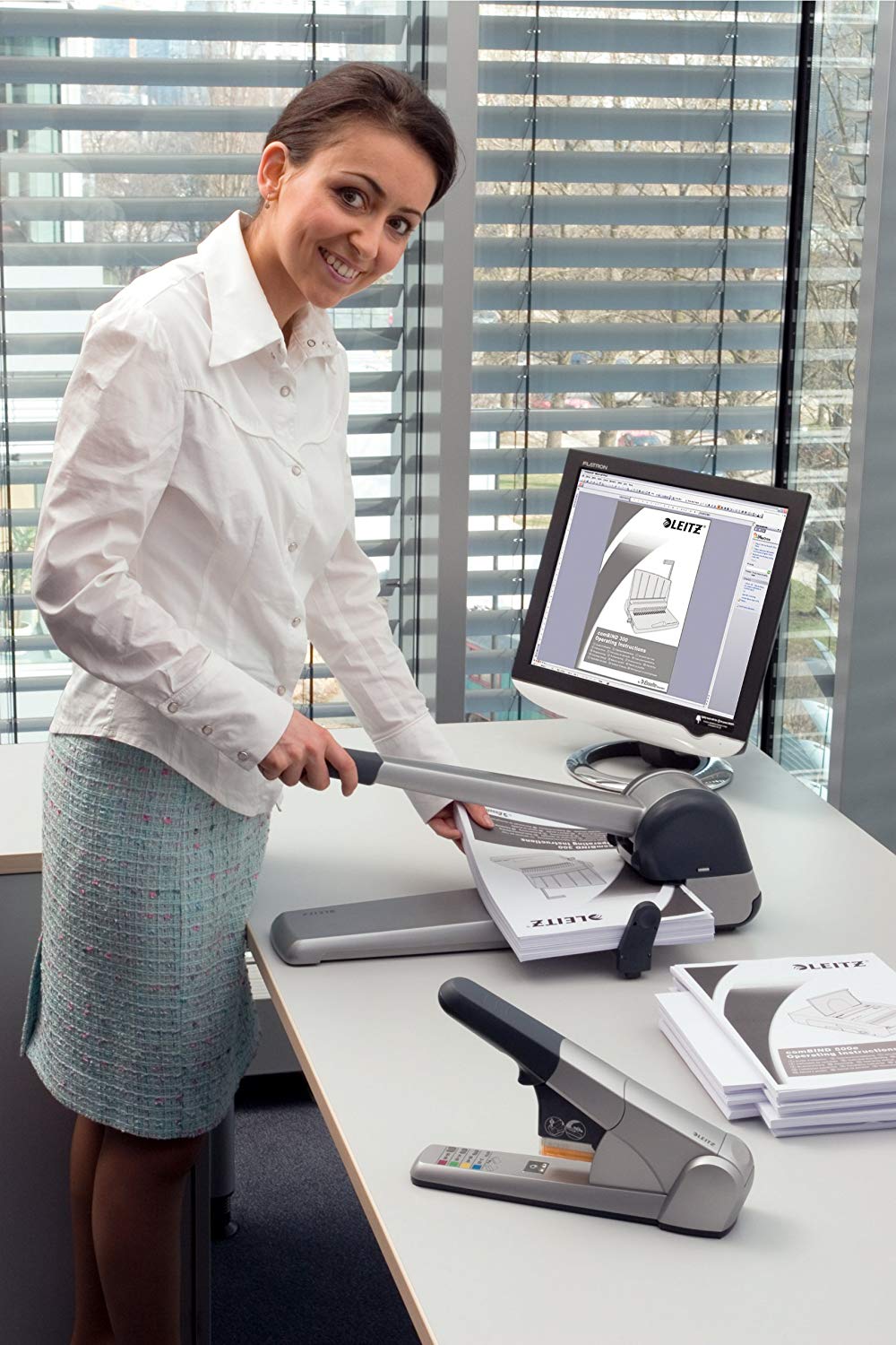 Perforator cu braț lung pentru perforarea fără efort a documentelor voluminoase, format A4/A3. Perforează până la 250 coli de hârtie (80 gsm). Tehnologie Powersave și braț lung ce permit o perforare cu efort minim din partea utilizatorului. Indicator de hârtie din metal, gradat până la format A3. Tăviță pentru confeti cu eliberare ușoară. Burghiele sunt acoperite și protejate de o carcasă, pentru o utilizare sigură. 10 ani garanție și certificare GS pentru utilizare în siguranță.