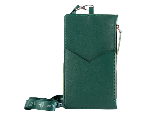 Portofelul din piele ecologica dubla fata este destinat calatoriilor. La exterior are cate un buzunar pe fiecare parte pentru documentele de calatorie, iar in mijloc un buzunar generos inchis cu fermoar metalic polisat pentru bani si obiecte de valoare. se prinde de gat cu snur textil. Culori disponibile: negru, verde, gri, albastru. Dimensiuni portofel (inchis): 12x 21 cm.