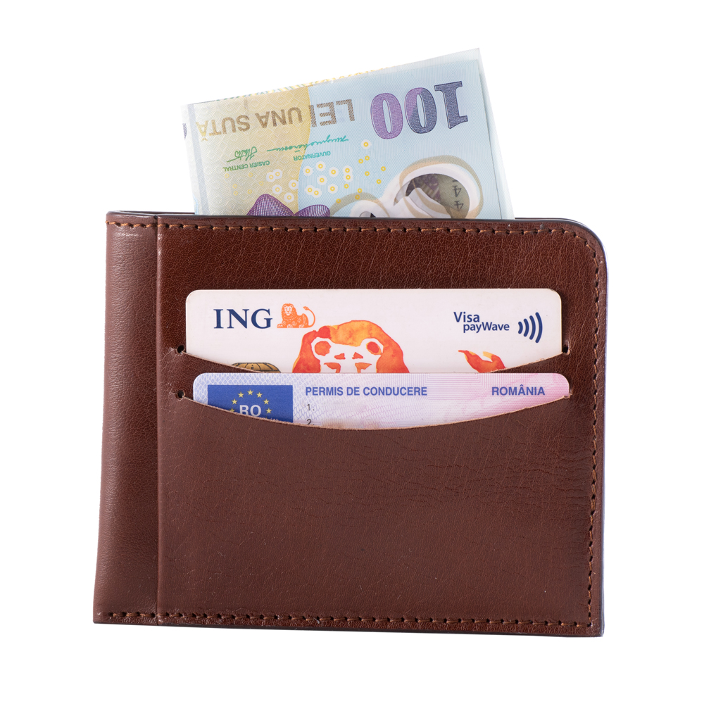 Portofelul este realizat din piele naturala non alergica. Are dimensiunea 11.5x9.5 cm si se inchide cu magnet ascuns. In interior are un buzunar generos pentru bani/buletin, iar pe exterior un buzunar pentru documente si alte 2 buzunare pentru carduri. Un accesoriu slim lucrat manual cu migala. Ideal si pentru calatorii. Culori disponibile: rosu, maro, negru. Ambalare in cutie individuala.