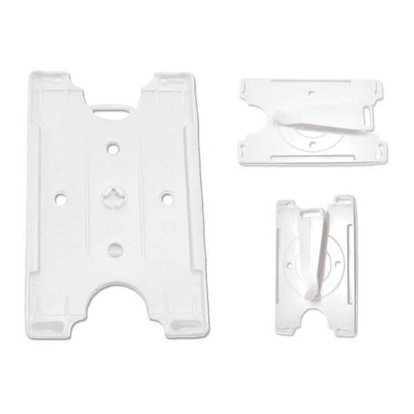 Posete rigide cu clips rotativ, cu o fata libera, verticale si orizontale in acelasi suport. Clipsul rotativ este inclus. Material: ABS. Dimensiuni interioare 54 x 86 mm si exterioare 57 x 90 mm. Culoare: alb.