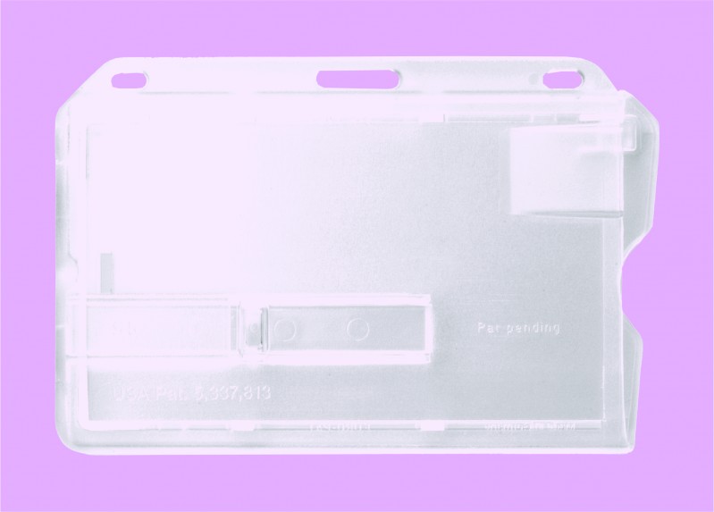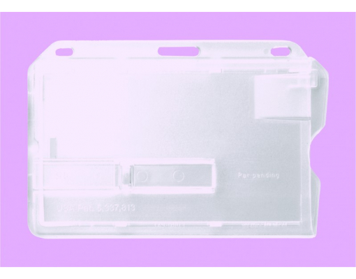 Posete rigide orizontale transparente pentru un card cu extractor. Material: policarbonat. Sistem de scoatere a cardurilor. Un orificiu oval de prindere pentru clips si snur textil. 2 orificii rotunde de prindere pentru lantisor. Dimensiuni interioare: 54 x 86 mm si exterioare: 62 x 92 mm.