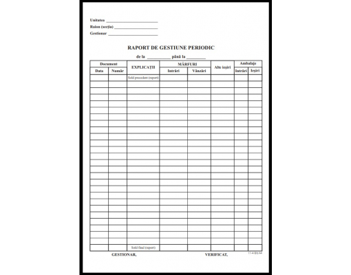 Raport gestiune periodic A4 , 100file/carnet, tipar FATA , offset , necopertat