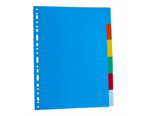 Din carton manilla de 180 gr/mp. Fiecare fila are aceeasi culoare pe intreaga suprafata. Cu 11 perforatii pe partea stanga pentru indosariere. Format: A4. Culori/set: 10.