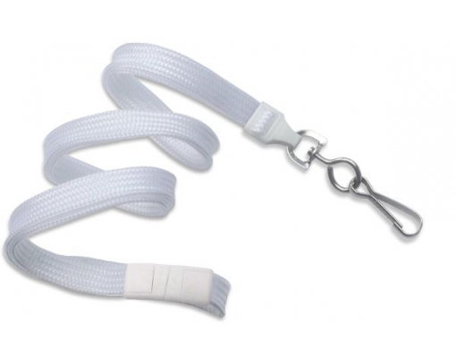 Snur textil plat antistrangulare, pentru ecuson, 10 mm latime. Material: poliester. Lungimea snurului: 91.44 cm. Sistem de prindere: carabina metalica. Culoare: Alb.