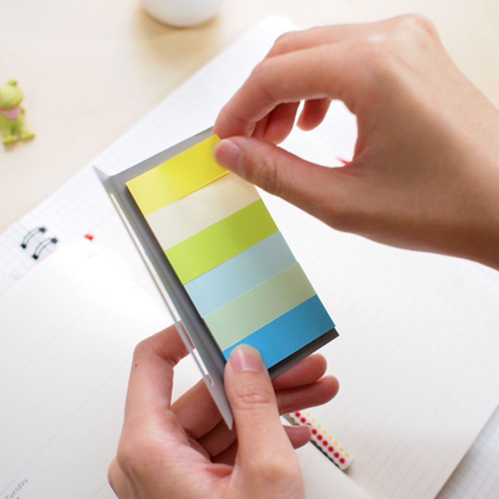 Index repozitionabil. Folositor ca marcare, clasificare in dosare si indexare. Dimensiuni: 45 x 15 mm Ambalare: 6 x 30 file/set. Culoare: 6 culori neon si pastel: galben, verde, galben pastel, bleu, verde pastel, albastru.
