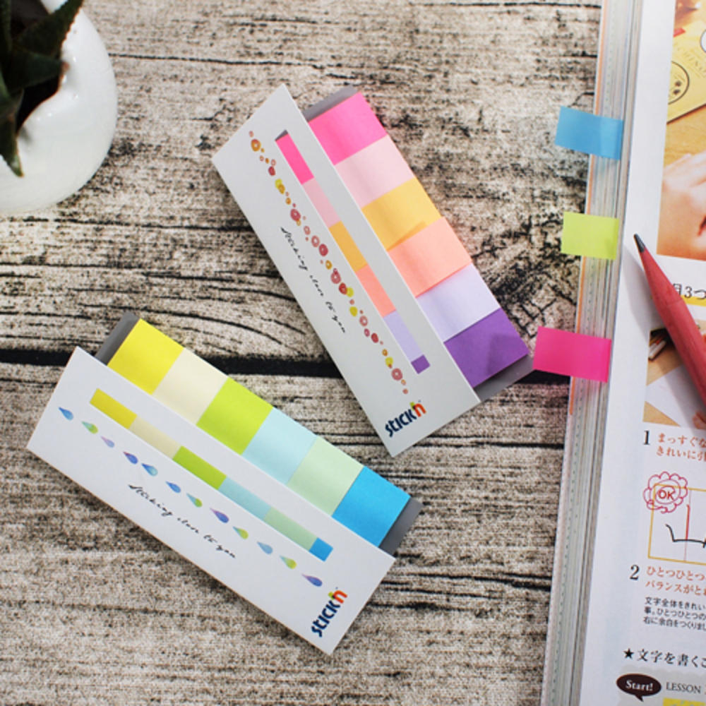 Stick index hartie color 45 x 15 mm, 6 x 30 file/set, Stick"n - 6 culori neon si pastel
