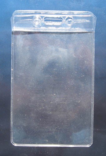 Suport flexibil vertical pentru legitimatie/ecuson, cu inchidere pentru protectia continutului. Fabricat din plastic, transparent, cu dimensiuni interioare 62x89 mm si exterioare 65x108 mm.