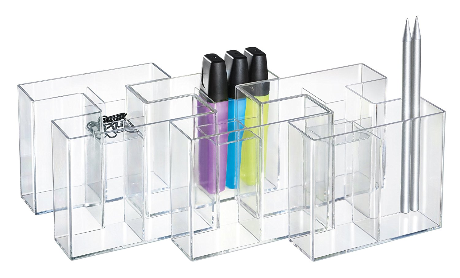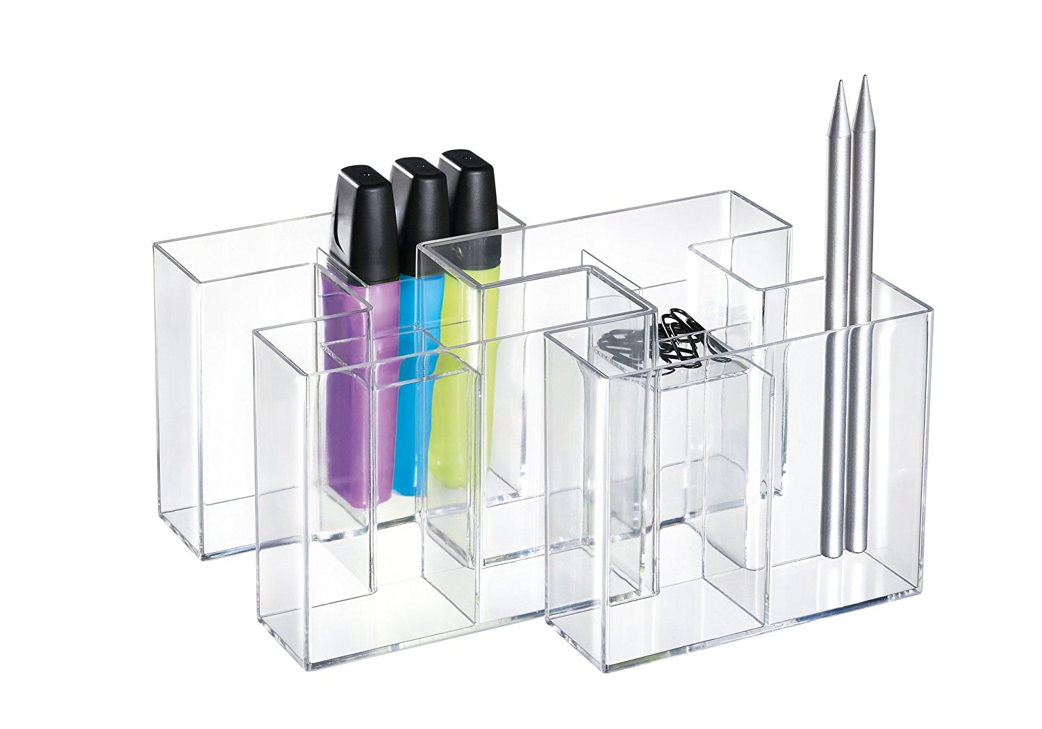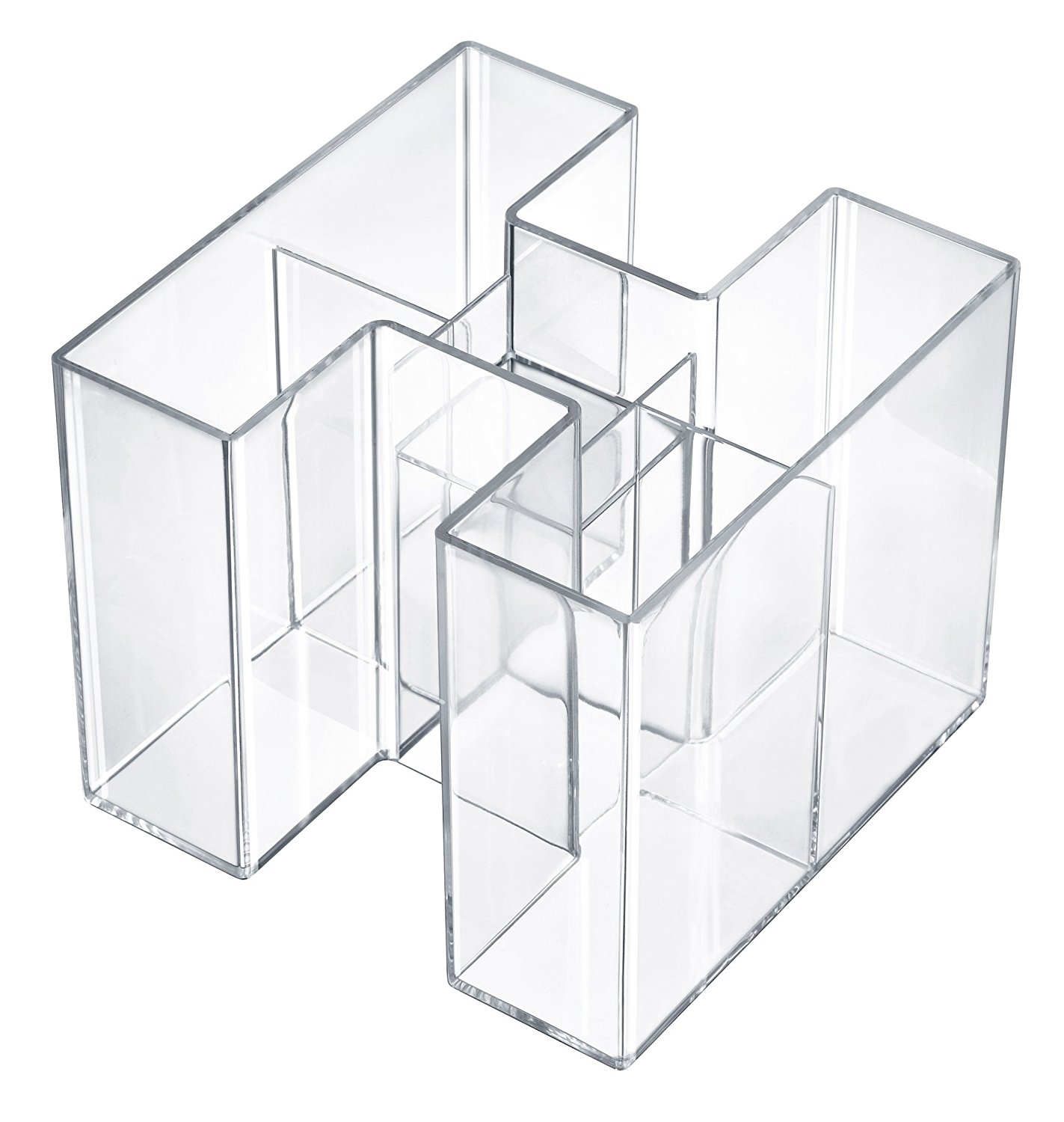 Un suport atractiv, durabil si distinctiv. 4 compartimente care asigura suportul pentru instrumente de scris si markere. Compartimentul mai mic din mijloc este ideal pentru radiere si agrafe. Datorita design-ului inovativ, suportul Bravo poate fi extins: ori ca un singur suport sau ca pereche de trei suporti. Confectionat din material plastic de calitate superioara, fara metale grele. Dimensiuni: 109 x 90 x 109 mm. Culoare: transparent cristal.