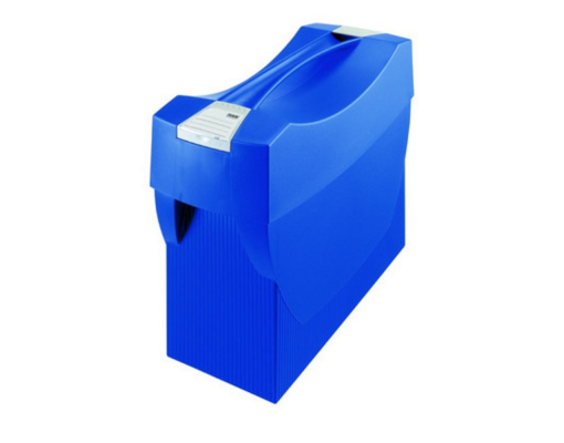 Suport din plastic cu capac, cu design inovator si constructie solida. Prevazut cu suport pentru instrumente de scris si eticheta. Prevazut cu manere laterale pentru a fi transportat cu usurinta. Potrivit pentru 20 dosare suspendabile. Confectionat din material plastic de calitate superioara, fara metale grele. Dimensiuni: 397 x 154 x 347 mm. Culoare: albastru.