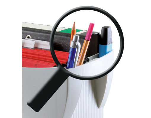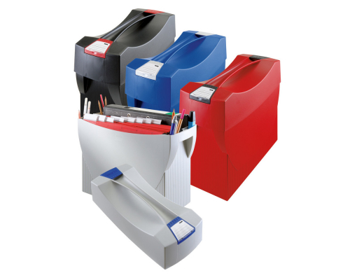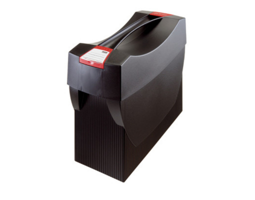 Suport din plastic cu capac, cu design inovator si constructie solida. Prevazut cu suport pentru instrumente de scris si eticheta. Prevazut cu manere laterale pentru a fi transportat cu usurinta. Potrivit pentru 20 dosare suspendabile. Confectionat din material plastic de calitate superioara, fara metale grele. Dimensiuni: 397 x 154 x 347 mm. Culoare: negru.