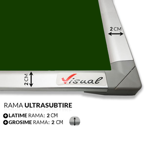 » Fiecare tabla Visual, are folie de protectie pe suprafata de scris ( dupa montare se indeparteaza ), o extra folie pentru protectia ramei si sunt ambalate individual, in cutii de carton foarte groase si rezistente, speciale pentru transport.