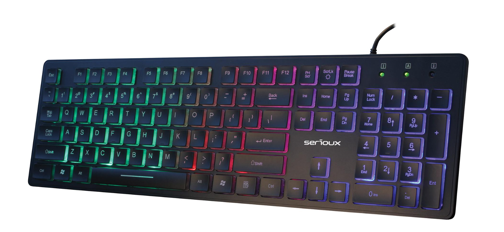 Tastatura Serioux 9500i, cu fir, US layout, iluminata, taste tip Chiclet, neagra, USB