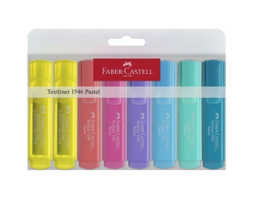 Textmarker Faber Castell 1546, varf tesit, 1-5 mm, 8 culori pastel/set